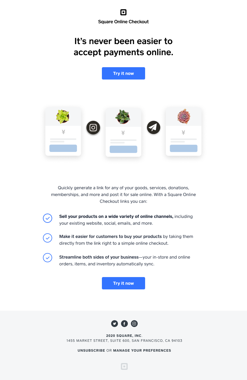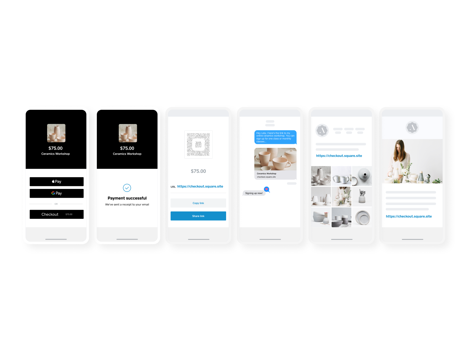 Square Online Checkout lets you create a pay link in just a few steps—give it a name, give it a price, and save. Now it’s ready to share. Customers click through and get taken to a simple checkout screen where they only need to enter three things—name, email, and payment info—so transactions are fast, easy, and friction-free.